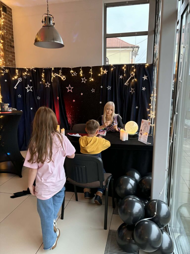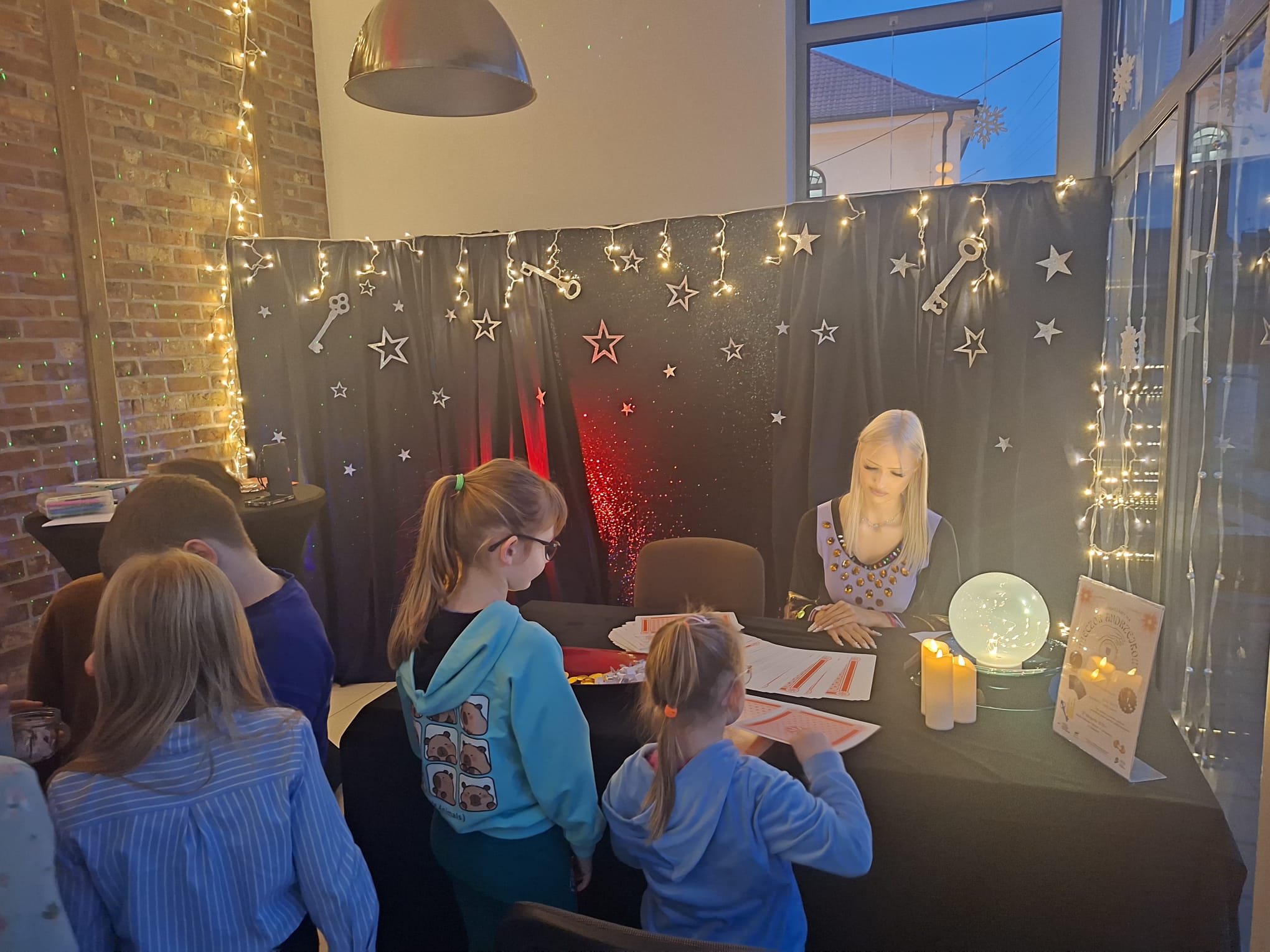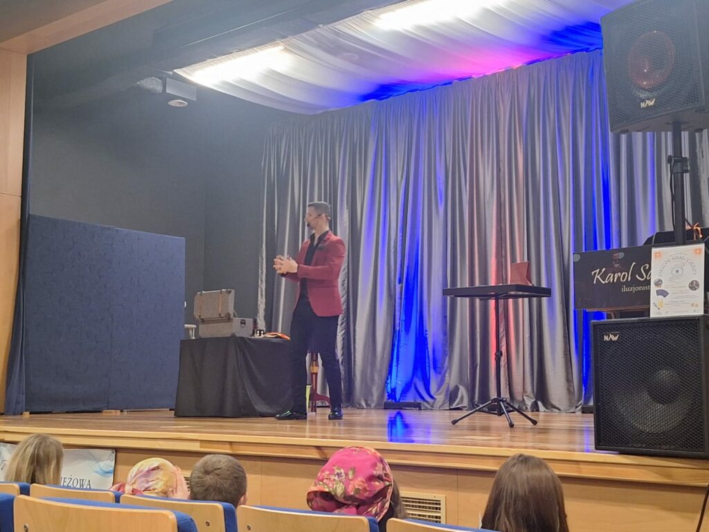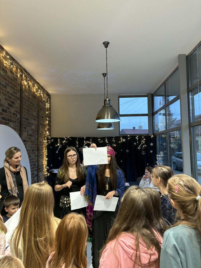 Największą niespodzianką był pokaz iluzjonistyczny w wykonaniu Karola Sanetti, który swoją energią i humorem zachwycił dzieci i dorosłych. Wspaniale poprowadzoną pierwszą część spotkania przygotowała Pani Sylwia, wprowadzając uczestników w magiczny świat wróżb, tradycji i obyczajów Andrzejkowych.