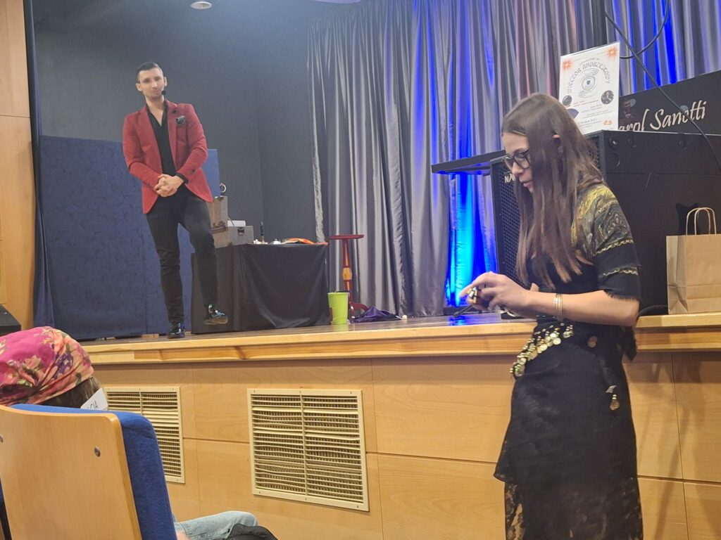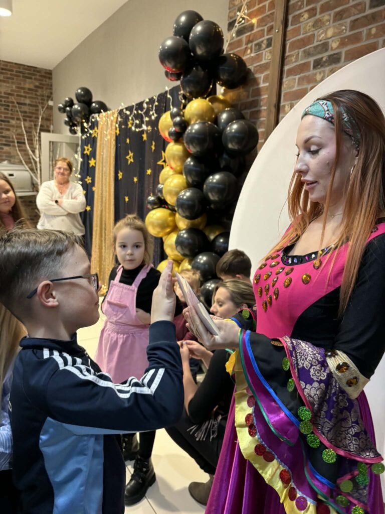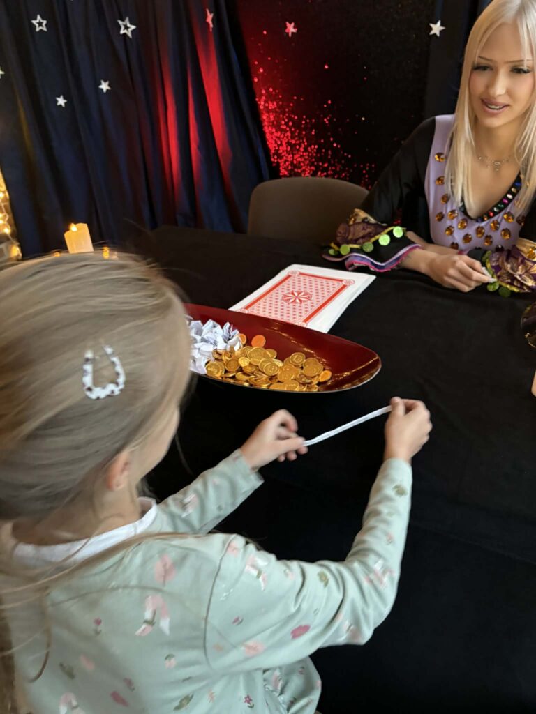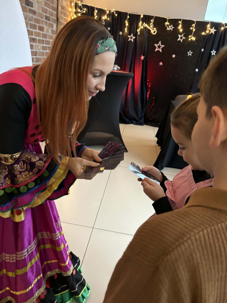 Największą niespodzianką był pokaz iluzjonistyczny w wykonaniu Karola Sanetti, który swoją energią i humorem zachwycił dzieci i dorosłych. Wspaniale poprowadzoną pierwszą część spotkania przygotowała Pani Sylwia, wprowadzając uczestników w magiczny świat wróżb, tradycji i obyczajów Andrzejkowych.